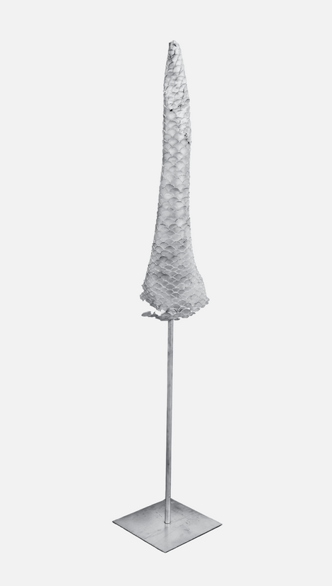 The series is composed of objects and sculptures that form part of a kind of sacred settlement. The pieces evoke—individually or collectively—shapes that recall mythical figures and ritualistic utensils, like altar items.