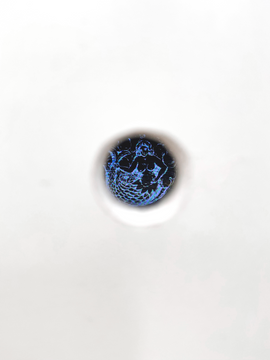 The work draws parallels between Christian and mythical iconographies surrounding the figure of the mermaid, and proposes reflections on decoloniality, ancestry, censorship, and appropriation.
